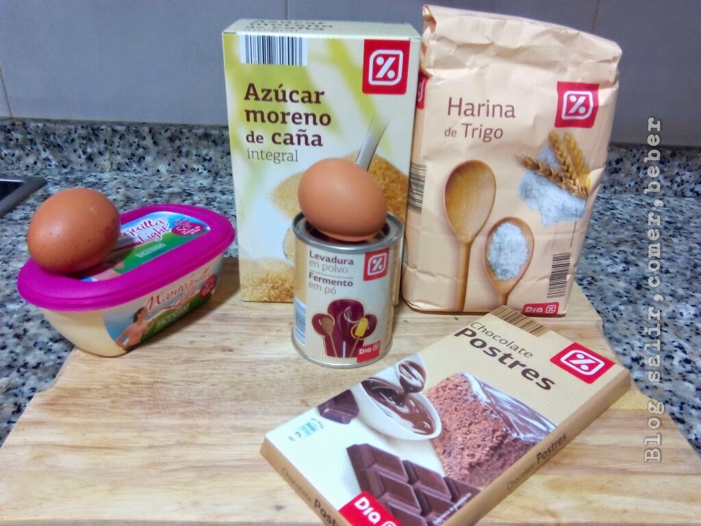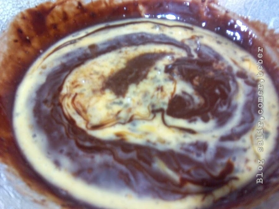 Por otro lado, batimos dos huevos y añadimos el azúcar, la levadura y la harina, mezclando bien todos los ingredientes y los añadimos a la mezcla de chocolate y mantequilla que hemos sacado utilizando el microondas.