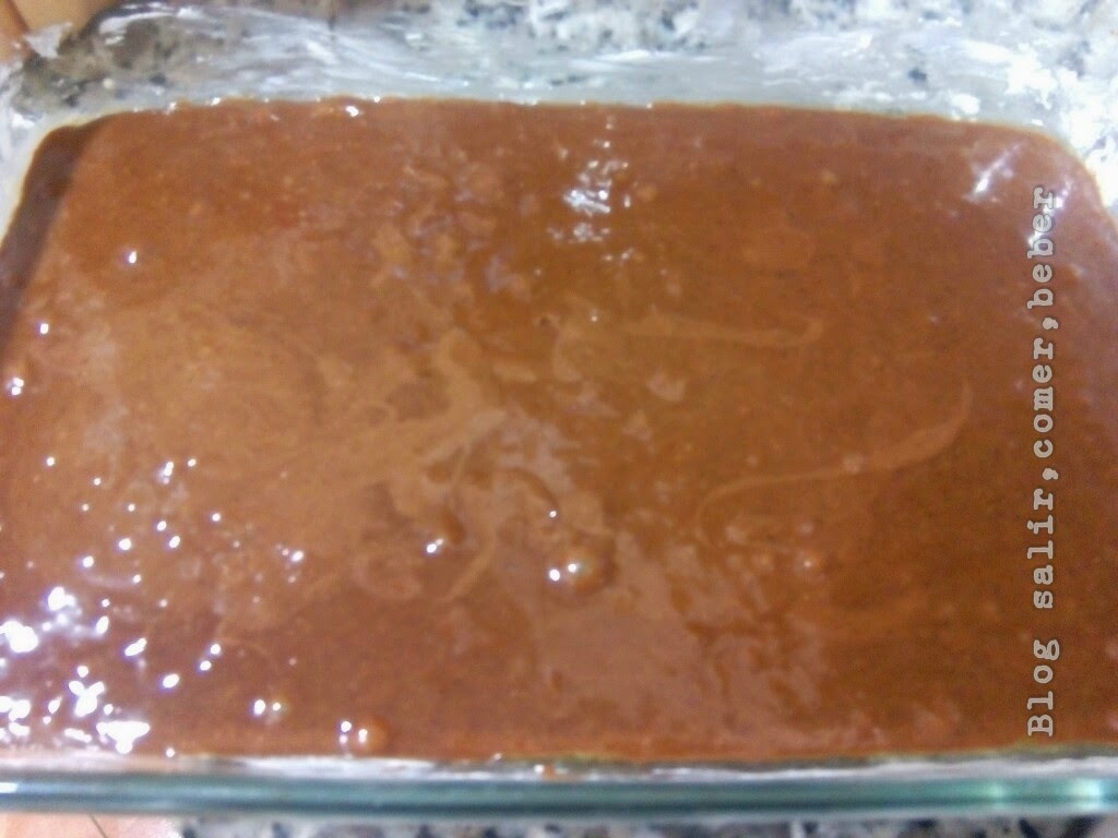 Cuando tengamos todos los ingredientes bien mezclados, los añadimos a un molde que previamente habremos tenido que engrasar para que al desmoldar no tengamos problemas.