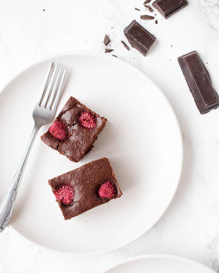 De las 3 pruebas que hice este ha sido el que antes se ha acabado, ha gustando un montón, incluso a los paladares más dulces y selectos. A cada brownie le puse un topping distinto: nueces, frambuesas frescas y pepitas de chocolate negro. ¿Adivinas cuál les gusto más? Todos coincidieron en que el de frambuesas estaba buenísimo, la fruta le aportaba un toque fresco que combinaba muy bien con el sabor a chocolate. Además mirad que bonito queda el brownie con los tonos rosas.