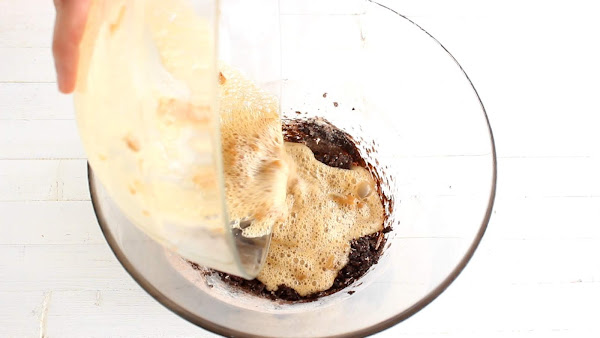 y terminaremos incorporando a la mezcla del sirope de agave, cacao, harina y sal. Batiremos.