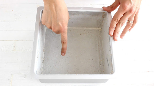 4º Precalentaremos el horno a 180ºC y prepararemos el molde con un poco de margarina y harina, preferiblemente uno cuadrado de 15 cm, también podemos hornear en un molde circular de 20 cm de diámetro, aunque lo habitual es que este tipo de postre tenga forma cuadrada o rectangular.
