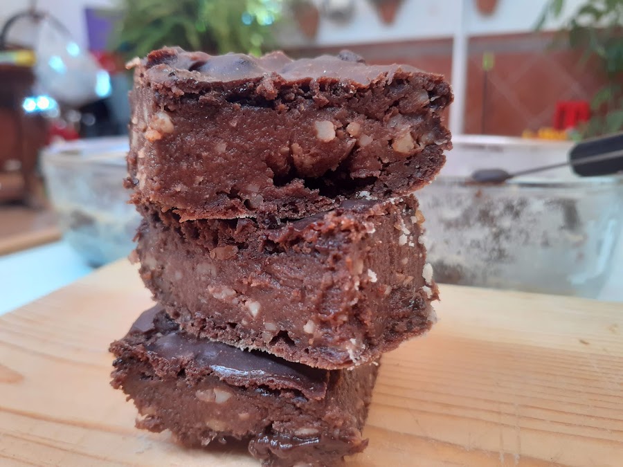Aplastamos los aguacates y el plátano, mezclamos con el cacao en polvo y la pasta de dátiles.