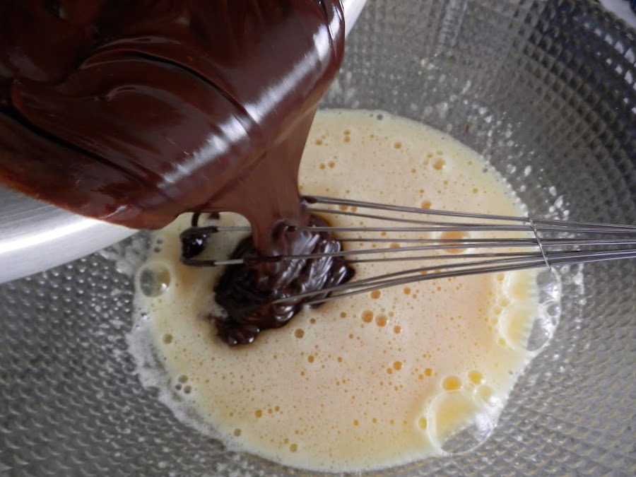 En otro bol, pon la mantequilla y el chocolate y funde al baño María.