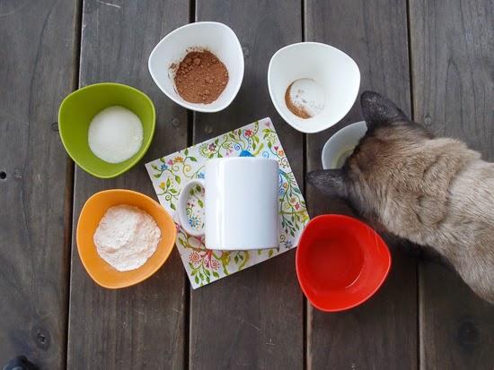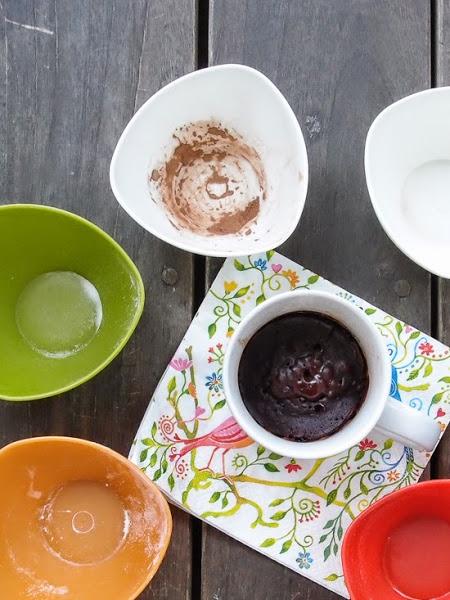 ¿Bonito eh? basta con agregar los ingredientes secos por un lado y luego los líquidos, mezclar y llevar al microondas. Y listo, hasta un niño puede hacerlos.