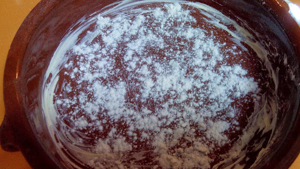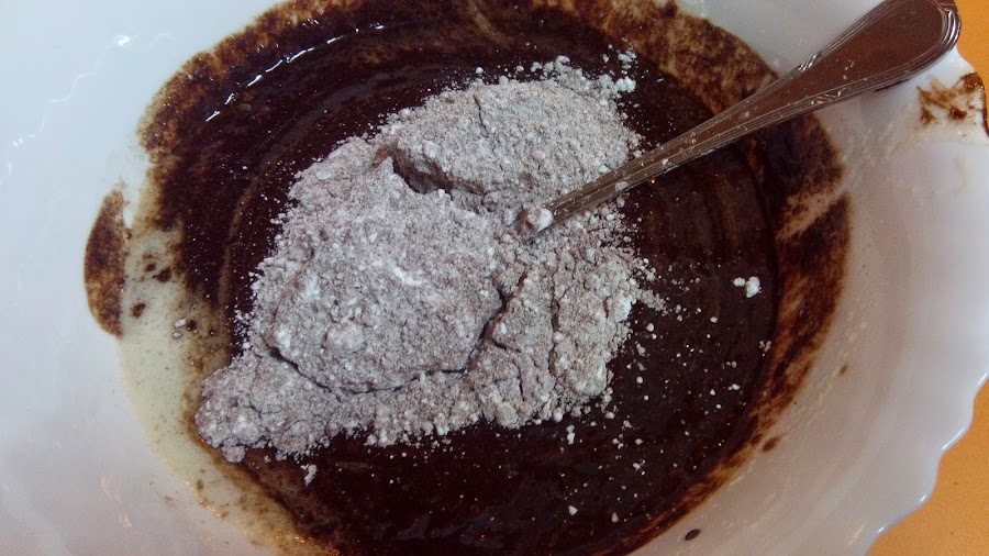 En otro bol mezclar la harina, la levadura y el cacao en polvo.