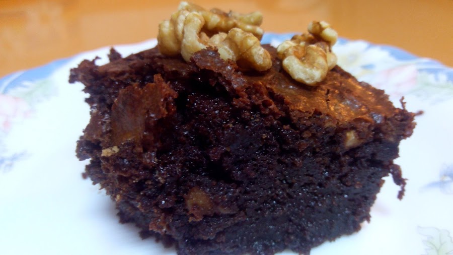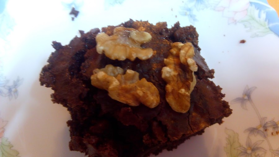 Ha salido buenísimo, pero no os fijéis mucho en la foto, ya que mis hijos estaban impacientes por probarlo y lo corté antes de que se hubiera enfriado del todo y cuadrado no ha salido, más bien parece una magdalena ;-) Pero os aseguro que de sabor estaba excelente.