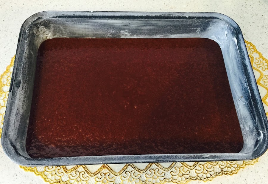 Lo colocamos en un molde para horno, previamente enmantecado y enharinado.