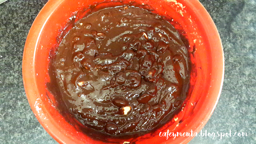 6. Metemos la mezcla que será nuestro Brownie en el molde y lo metemos dentro del horno, a 180º durante unos 20 minutos, hasta que la capa de arriba quede un poco agrietada y de un marrón pálido.
