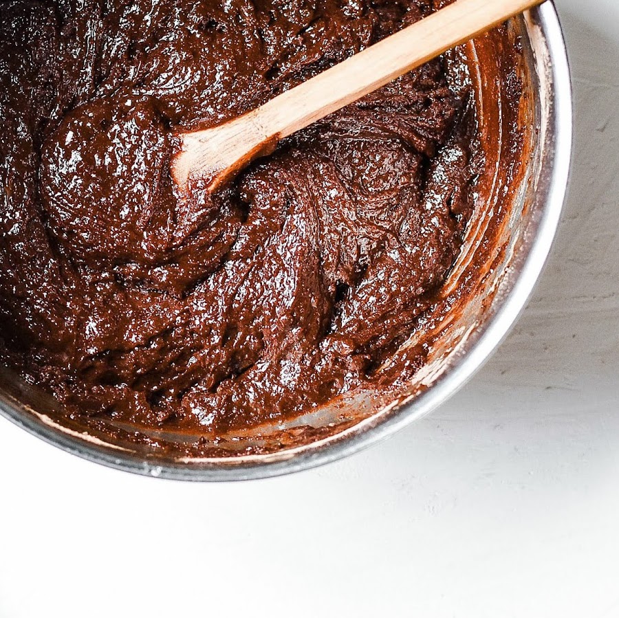 En un bowl ponemos todos nuestros ingredientes secos, y los integramos con una espátula de silicón. Hacemos un huequito al centro del bowl y ponemos nuestra mantequilla, extracto de vainilla y huevos. Mezclamos de manera envolvente hasta integrar.