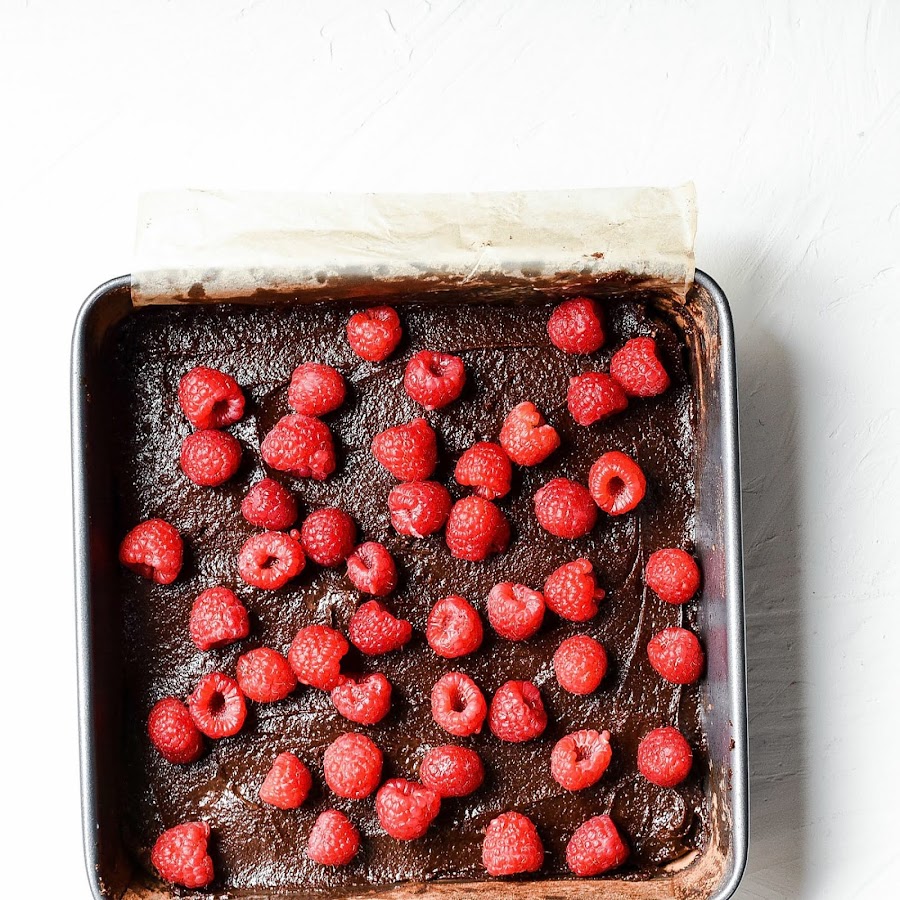 La receta de brownies es la misma de Donna Hay que utilicé en los ""Brownies Doble Chocolate", sólo que está vez reducí un poco la cantidad de mantequilla y azúcar. También omití las piezas de chocolate y lo intercambié por frambuesas.