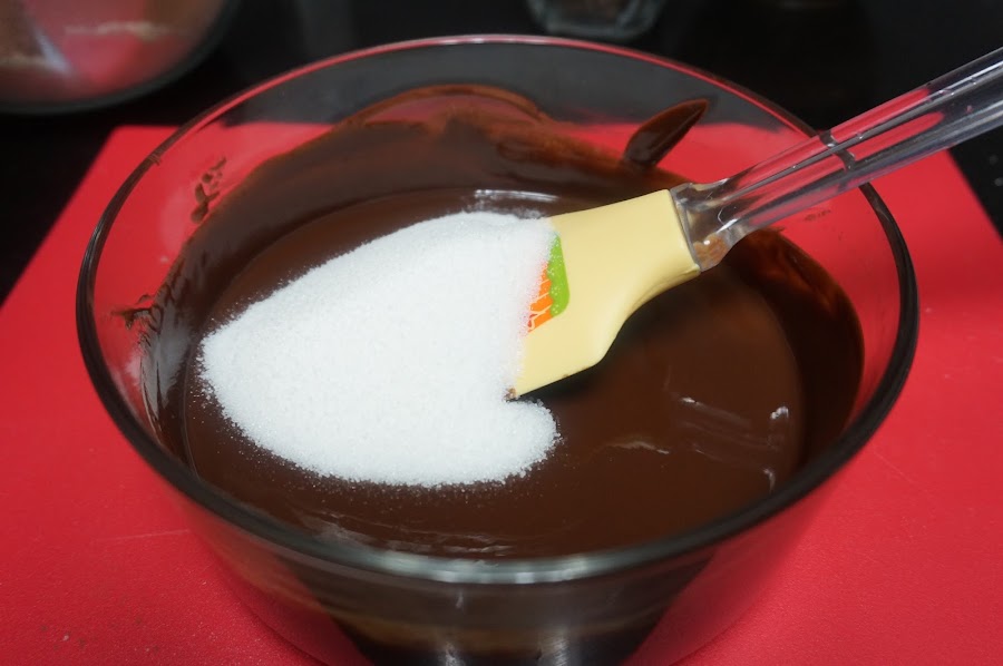 Una vez fundido, le agregamos el azúcar y lo integramos bien.