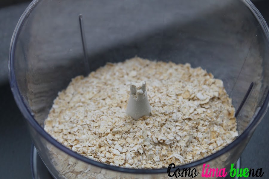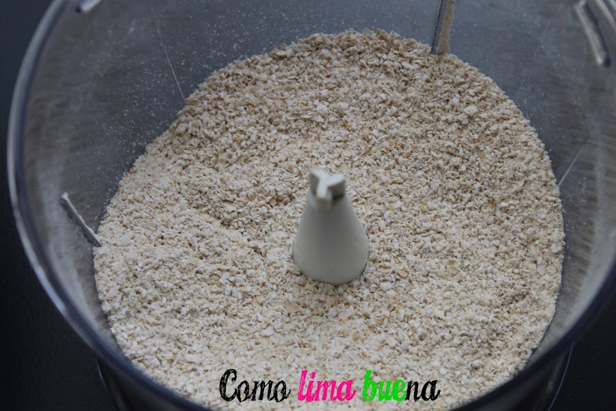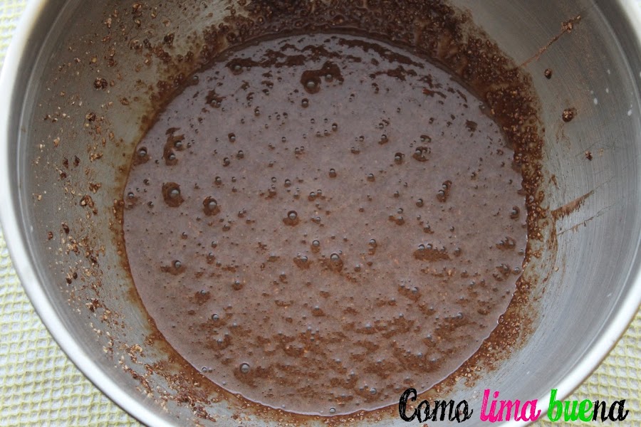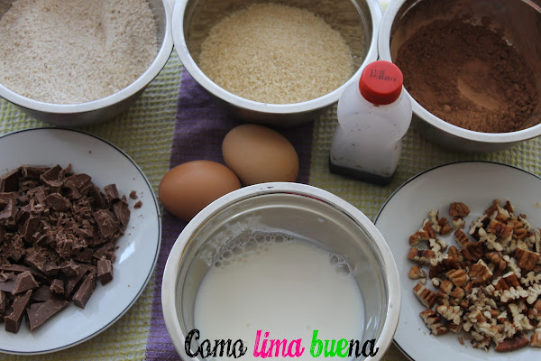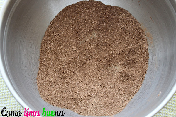 Mezclamos primero los ingredientes secos (harina de avena, cacao, azúcar y polvo para hornear).