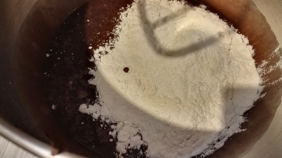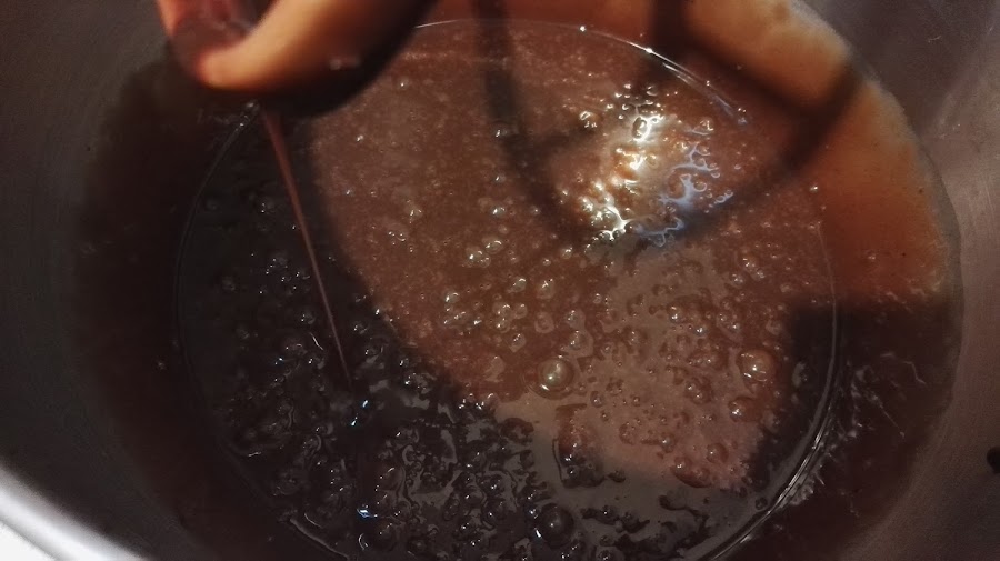 Agregamos el chocolate con la mantequilla y mezclamos nuevamente.