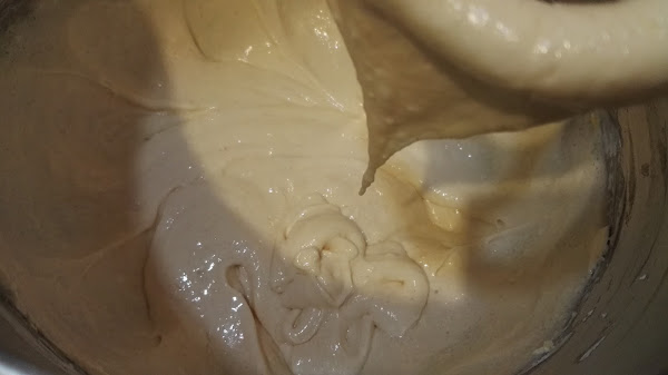 Agregamos la harina y mezclamos solo lo necesario hasta integrar.