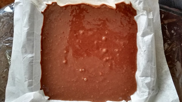 Vetemos la mezcla en un molde cuadrado de 9x9 pulgadas aproximadamente, previamente cubierto con papel de cocina y un poco de aceite de oliva para evitar que se adhiera.