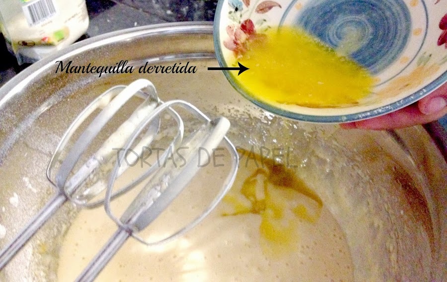 En este paso debemos derretir la mantequilla que quede liquida y añadirla a la mezcla del bowl y batir 5 segundos