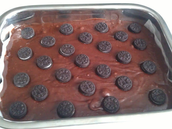 5. - Repartir la mezcla por encima y decoramos con las mini oreo