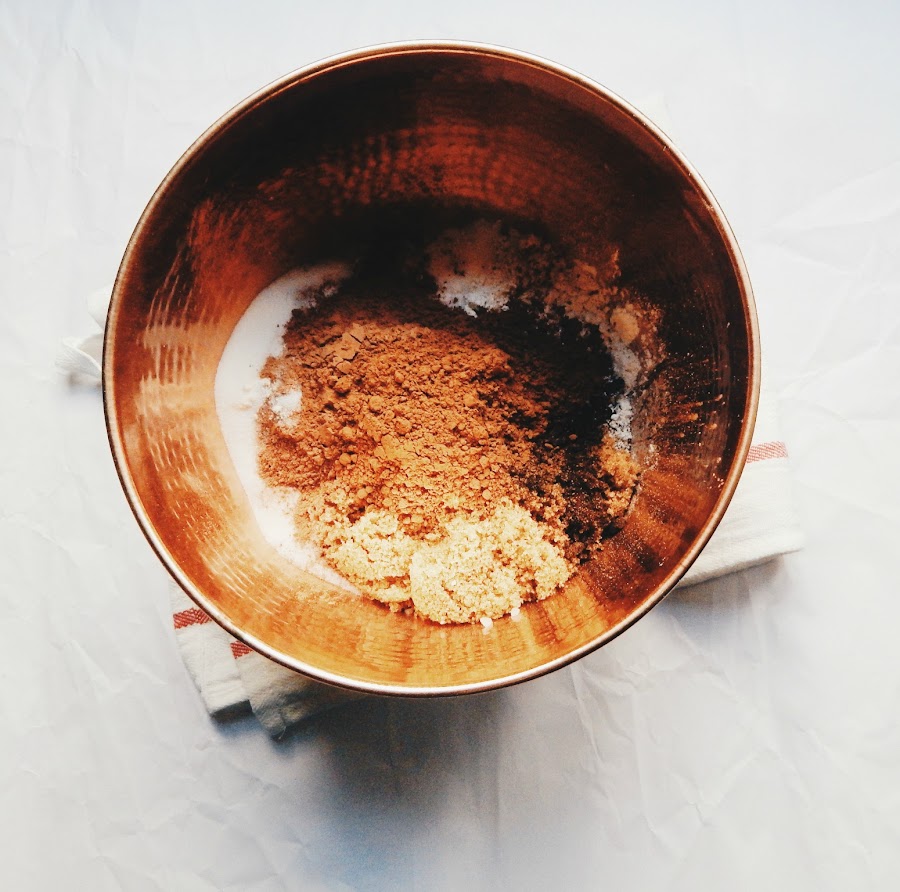 En un bowl ponemos todos nuestros ingredientes secos y los integramos con una espátula de silicon. Hacemos un huequito al centro del bowl y ponemos nuestra mantequilla, extracto de vainilla y huevos. Mezclamos de manera envolvente hasta integrar.