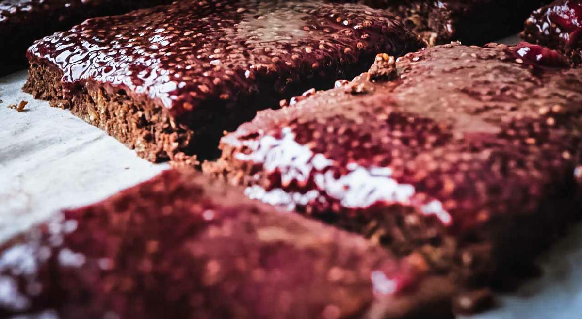 Para que nos queden unos brownies vegano saludables y light usa ingredientes sin azucar como la mantequilla de cacahuete o la mermelada de frambuesa.