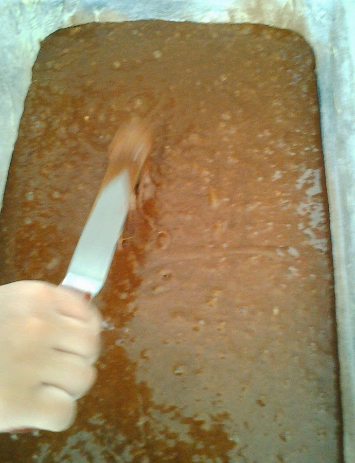 volcar la mezcla en un molde de 33 x 24 cm , enmantequillado forrado con papel manteca o de hornear y enharinarlo,yo mezclé harina con cocoa para enharinarlo y que no afectara el color de mis brownies , luego emparejé con una espátula