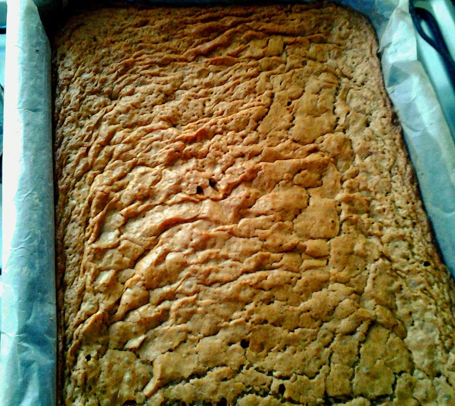 y lo llevé al horno a 180 °C por 10 minutos ,después le bajé la temperatura a 150 °C y lo horneé por 15 minutos más y listo un aroma maravilloso por toda la casa,ya solo había que colocarlo en una rejilla a enfriar ,desmoldar y cortar en cuadros , espolvorear azúcar impalpable sobre ellos y a devorarlos ,digo a disfrutarlos.