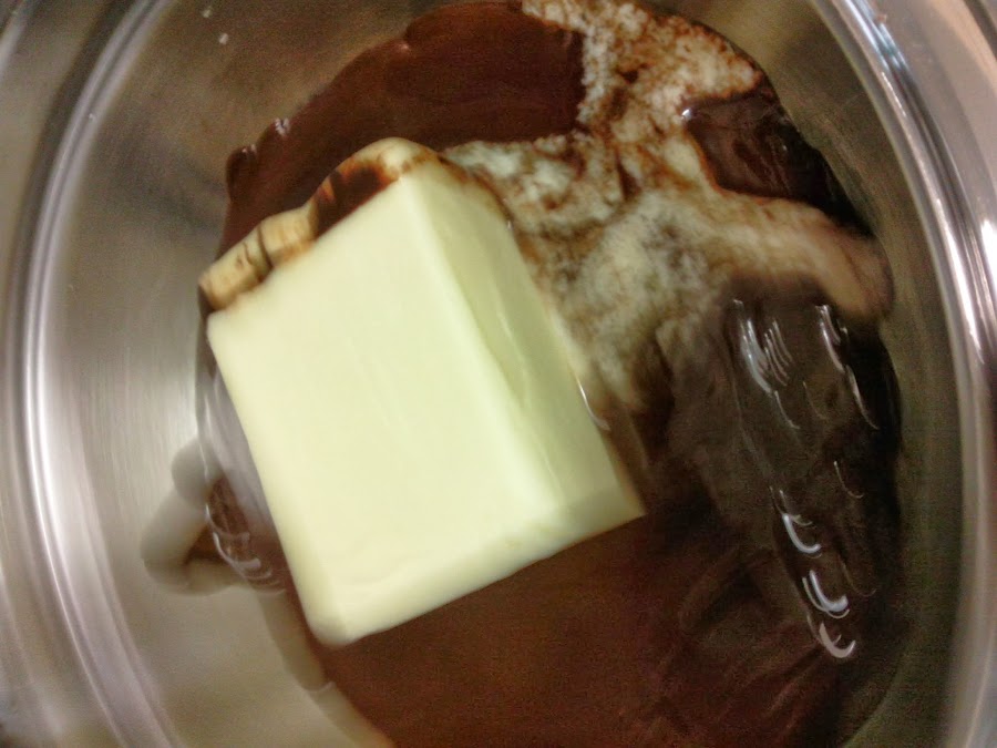 Cuando el chocolate esté totalmente derretido, añadimos la mantequilla y la incorporamos bien.