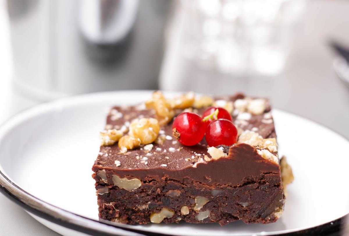 Otra cosa que me gusta es que tienen opciones para todos: desde bacon y pastrami hasta tofu y brownies veganos, como el que ven en la foto.