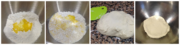 En un bol ponemos la harina mezclada con los 25 gr de azúcar y la sal. Agregamos la mantequilla derretida, el prefermento y el resto de harina. Unimos bien los ingredientes y amasamos hasta obtener una masa suave que no se pega a los dedos.