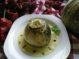 Vaciamos el interior con cuidado de no romper la piel. Reservamos lo que saquemos de carne de los calabacines.