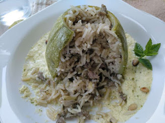 Transcurrido el tiempo, rellenamos los calabacines con el arroz.