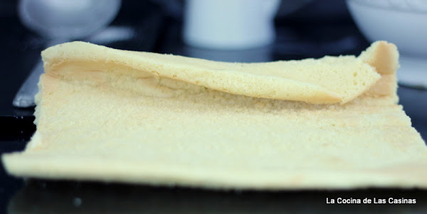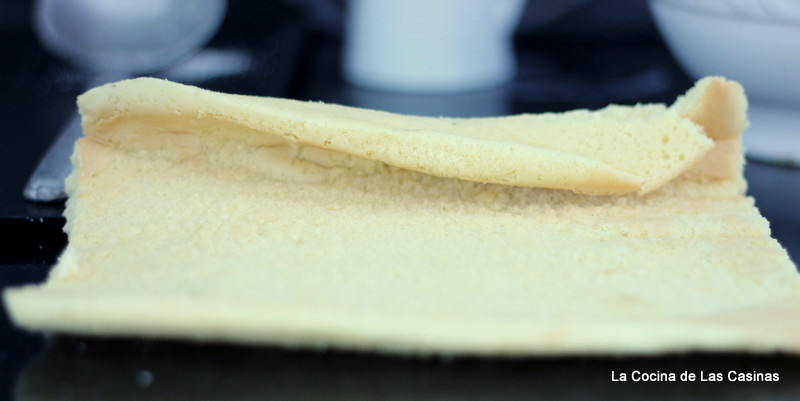 He preparado mi propio bizcocho, receta aquí, con la mitad de los ingredientes intentando preparar una plancha más fina, no es necesario puedes comprar una en la confitería.