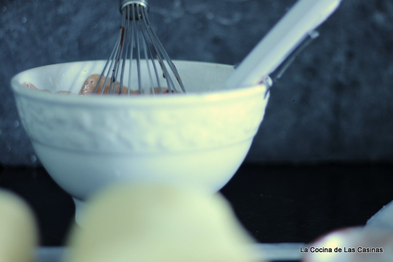 Empezamos con el glaseado, hidrata en un bol con agua las hojas de gelatina. Incorpora en una cazuela a fuego medio el azúcar, la nata (crema de leche) y el agua, no dejes de varillar. Cuando hierva, incorpora el cacao en polvo. Sigue varillando no queremos que se pegue, deberá de alcanzar una temperatura de 103º, si no tienes termómetro retira cuando veas que está lleno de burbujitas. Vierte en un bol, cuando esté más templado o la temperatura haya descendido a 60º añade las hojas de gelatina bien escurridas. Varilla hasta que estén bien incorporadas. Reserva.
