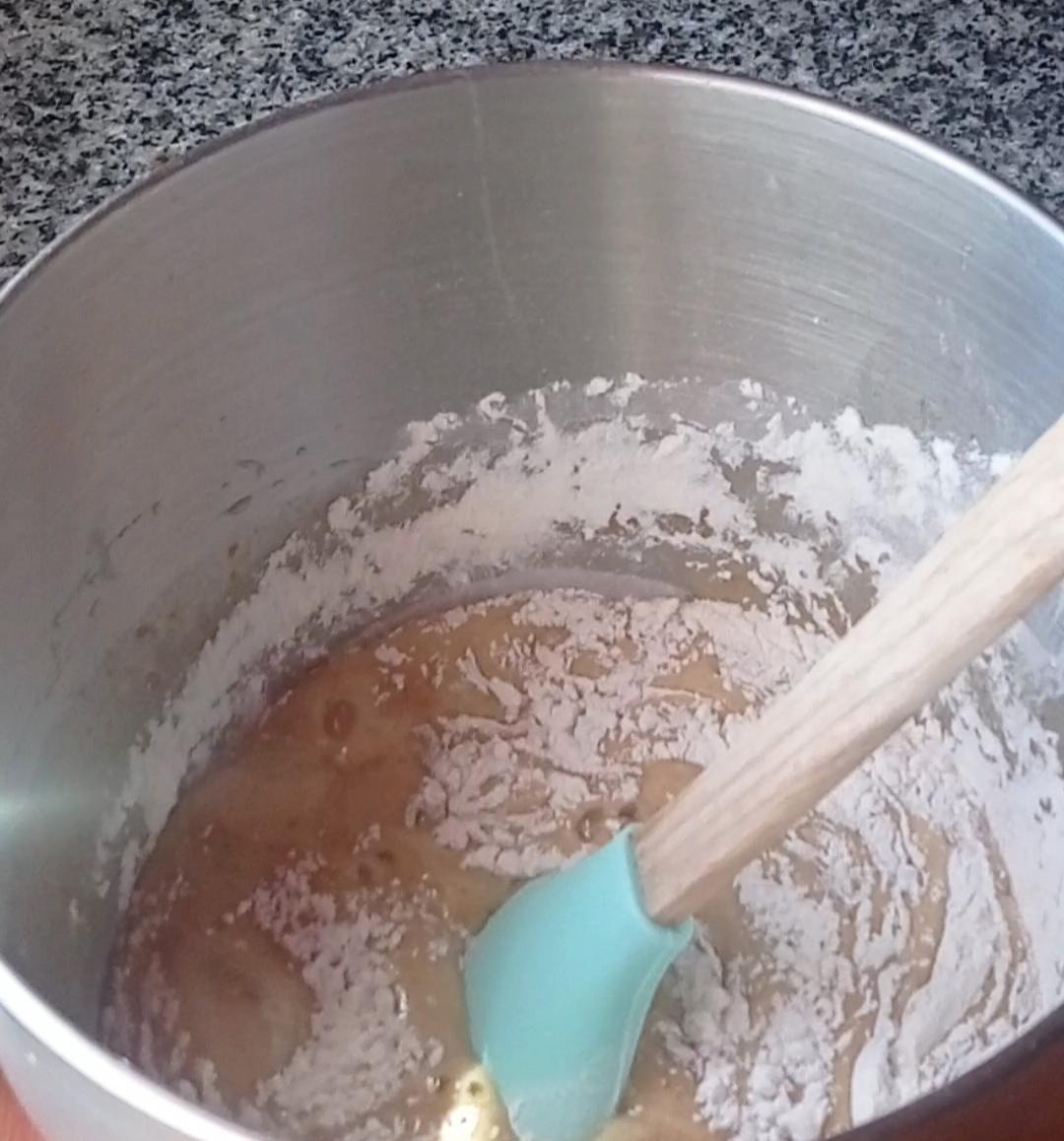 Agregar la harina y el chocolate junto con las nueces.