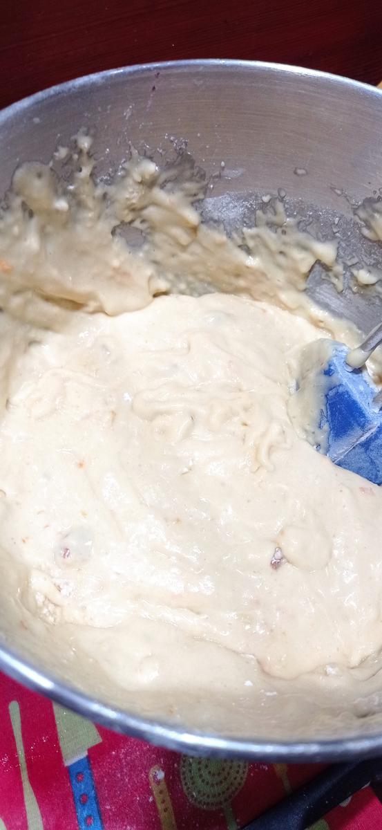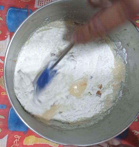 Agrega una de las tazas de harina , lo hice con batidora