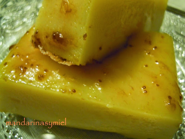 Cuando se enfríe, desmóldalo y ponle por encima cualquier mermelada, yo se la he puesto de higos y el contraste de sabores es muy rico.