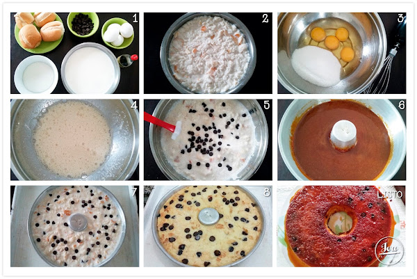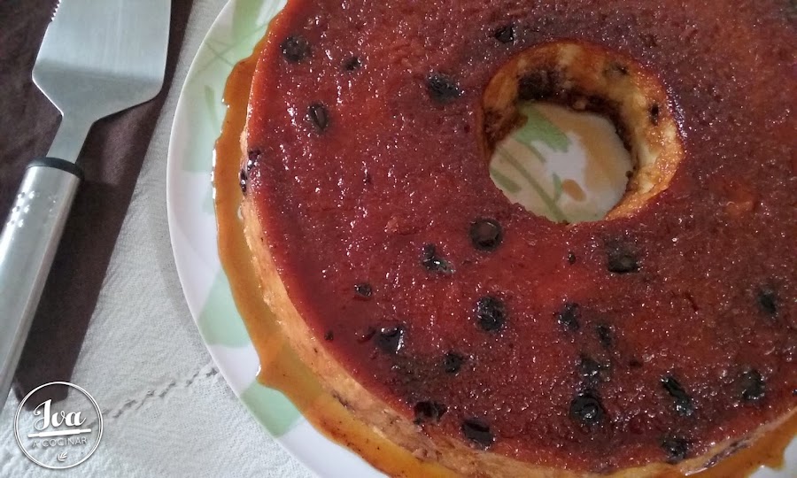 - Llevamos a hornear a baño maría, entre 175° o 180° por 45 minutos o hasta que al introducir un cuchillo en el budín, este salga limpio. Lo desmoldamos en tibio así se despega el caramelo y lo pueden servir frío (unas horas de heladera) o tibio.