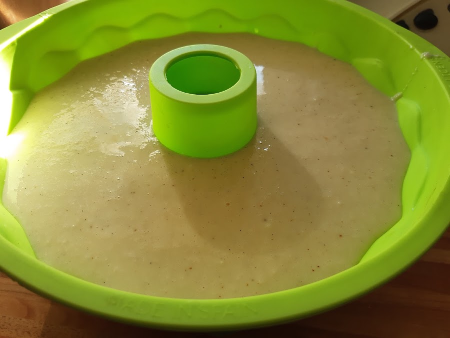 5.- Pon el molde dentro de otro, que tenga agua caliente, para cocinarlo a bañomaría. La cantidad de agua debe llegar mas o menos hasta la mitad del molde.