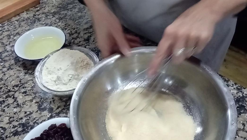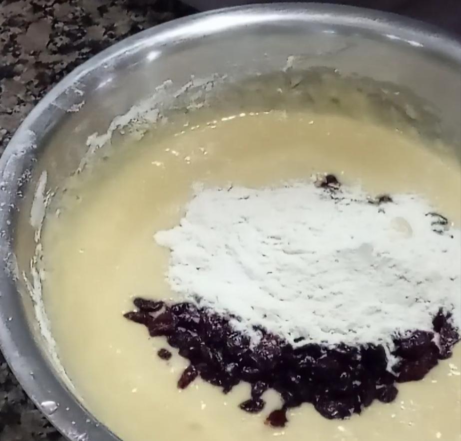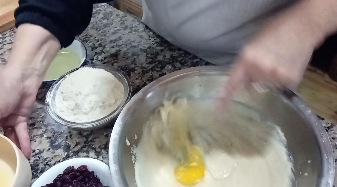 Luego la harina en tres veces, y en la última mezclada con los cramberries
