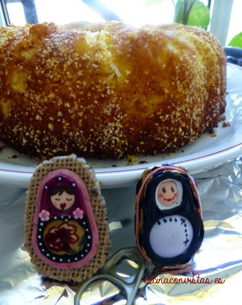 La receta de hoy, es una bondad de Maruchi, a ella se la tienes que agradecer (bueno, a su ajetreada vida amorosa más que sentimental) ha sido sin querer queriendo, la responsable de que yo la prepare siguiendo las indicaciones de Lucia quien, cuando me daba la receta, también me contó que se prepara en el nordeste de Brasil durante el mes de junio para celebrar las fiestas de San Antonio, San Juan y San Pedro (santos a los que, por cierto, Maruchi les tiene gran afecto y especial devoción -¡vaya usted a saber el porqué!). La historia es como sigue. Maary no quedes con nadie el sábado por la tarde, que paso a despedirme. Me voy con Elizeu a Brasil . Esto era lo que ponía el ?juasapito? que me mando Maruchi el jueves. Hasta me emocioné y todo. Que me dije a mi misma, mira tu por dónde acabas de conocer el nombre del Miamol y en un par de días, in person verás al responsable de la sonrisa que desde hace meses oxida los pendientes de la mi Maruchi. Porque aquí la reina, mucho hablarnos de las bondades del susodicho, de los cuidados, mimos y atenciones hacia su persona (la de ella) pero bien poco que nos lo ha enseñado, no se, no se. Puntual, como si del inicio de una corrida de toros se tratara, a las cinco de la tarde ha sonado el timbre: Elizeu (léase Elissseu, arrastrando la s como sólo Maruchi es capaz de hacerlo, inténtalo,así como si se te fuera la vida según lo vas pronunciando?otra vez más, que a la primera casi nunca sale, jajaj) no ha podido venir, tenía cousas que hacer. ?pena, penita, pena? creí que por fin iba a conocer a tu amol? Miamol se fue a la isla a ver a la familia y yo me voy con Elissseu a Bahía a ver a la suya. Joder Maruchi, que viajeros andamos!! Por cierto, si te llama mi madre durante los próximos quince días, cosa que dudo, no le cojas el teléfono... que le he dicho que me iba contigo a ver los mundiales. ?Cóoomo? pero si tu madre sabe de sobra que a mi no me gusta del futbol ni el verde del césped!!? Si, y también sabe que Miamol no está de retiro espiritual como le he contado y tampoco ha dicho nada. Es lo bueno que tiene irse haciendo mayor todo se relativiza más y la vida se ve con más sentido del humor. Y si ahora me como un trocito de ese budin me pasará como cuando camina la la Chica de Ipanema que o mundo inteirinho se inche de graça e fica mais lindo. A Brasil a lo peor no vamos, y con la chica de Ipanema probablemente tampoco nos encontraremos pero lo que si es seguro es que con un poquito de tiempo y ganas podamos preparar: