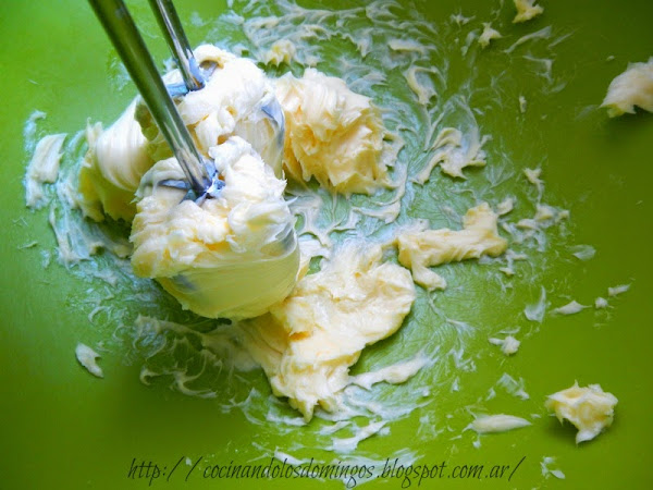 Aparte en un bol o recipiente ponemos la mantequilla o manteca