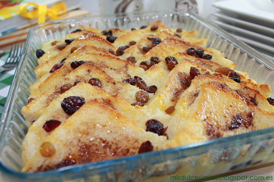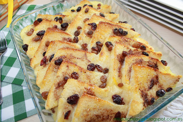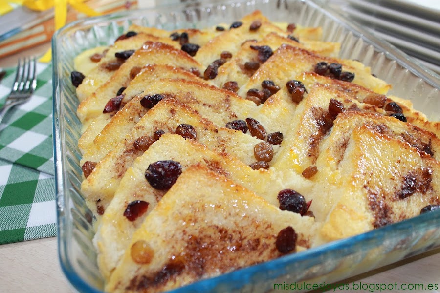 Este budín consiste en hornear una mezcla de pan con mantequilla y pasas o cualquier otro tipo de fruta deshidratada y luego bañarlo en huevos, leche y un poco de vainilla. Se consideraba un postre de gente sin recursos, ya que se hacía para aprovechar el pan que ya estaba duro. A medida que la clase media tuvo acceso a ingredientes como los huevos, la leche, las pasas o el azúcar este budín se hizo más sofisticado.