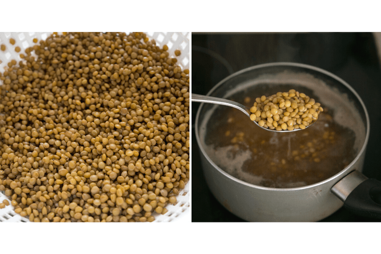 Mientras cocinamos la cebolla, avanzamos con el resto. Lavamos las lentejas en abundante agua y agregamos a una olla con agua hirviendo y una cdta de sal. Cocinamos durante aprox 20 minutos o hasta que estén “al dente” (ligeramente hechas). Reservar.