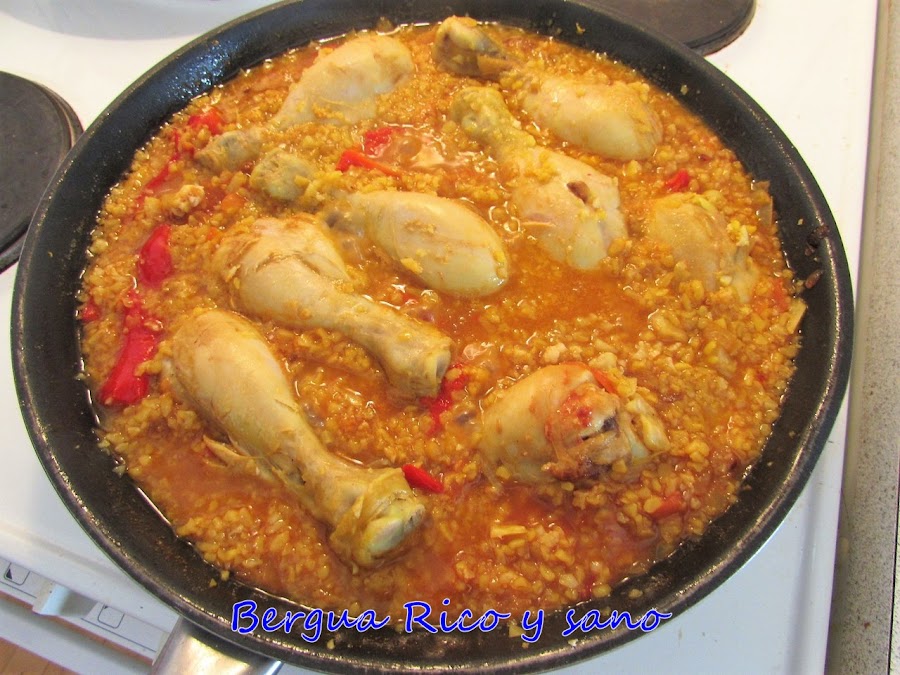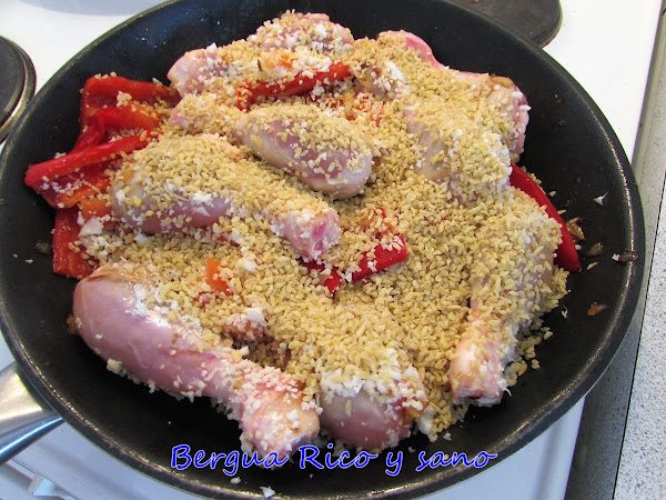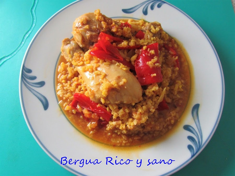 De arroz con pollo hay mil recetas a elegir, y esta es una más en la que cambiamos el arroz por bulgur. ¿Por qué hacer tal cosa? Pues por variar y porque además, el bulgur o trigo partido, es rico en vitaminas y fibra, es una buena fuente de proteína vegetal y tiene menos calorías que el arroz común.