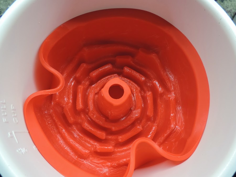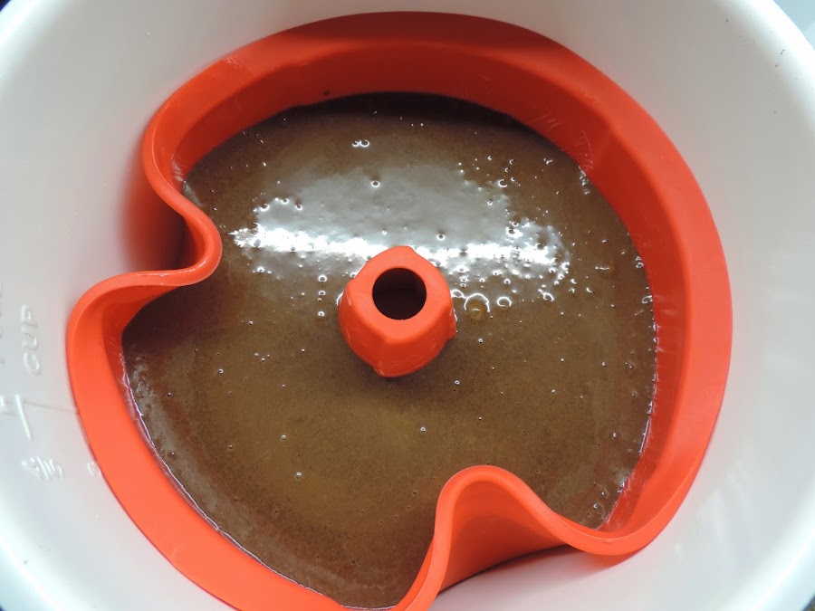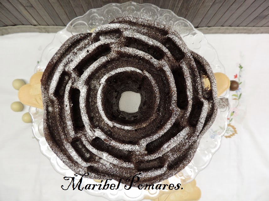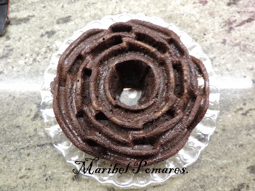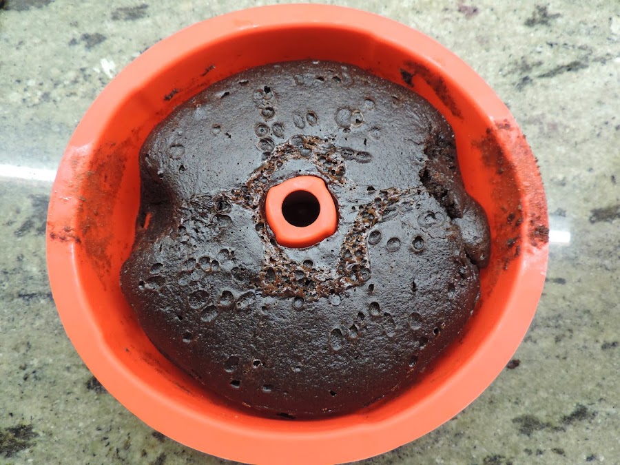 Dejamos enfriar antes de sacar de la cubeta y desmoldarlo, se ha quedado un poco abombado por los lados.