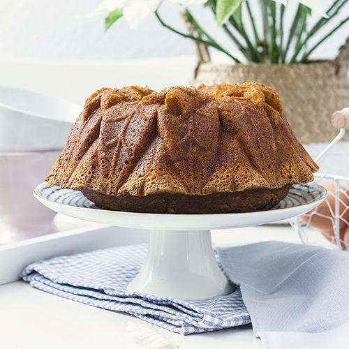 Bundt Cake de Agua de Azahar y Naranja. Bizcocho de Agua de Azahar con ralladura de naranja y horneado en molde para Bundt Cake Harvest Leaf de Nordic Ware