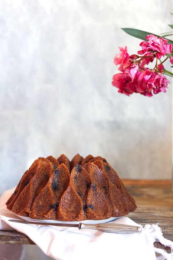 Empiezo una nueva semana y para afrontar éste lunes no encuentro una manera mejor de hacerlo que con éste bundt cake de arándanos. Me confieso una golosa empedernida, para mi no existe una buena comida si no esta rematada con un postre o con una onza de chocolate o cualquier otro dulce. Me encanta empezar el día con un café y un bizcocho hecho en casa, ya sea como en éste caso un bundt, unas magdalenas u otra bollería, pero siempre que es posible, casera, por eso aprovecho los fines de semana para avituallar la despensa.