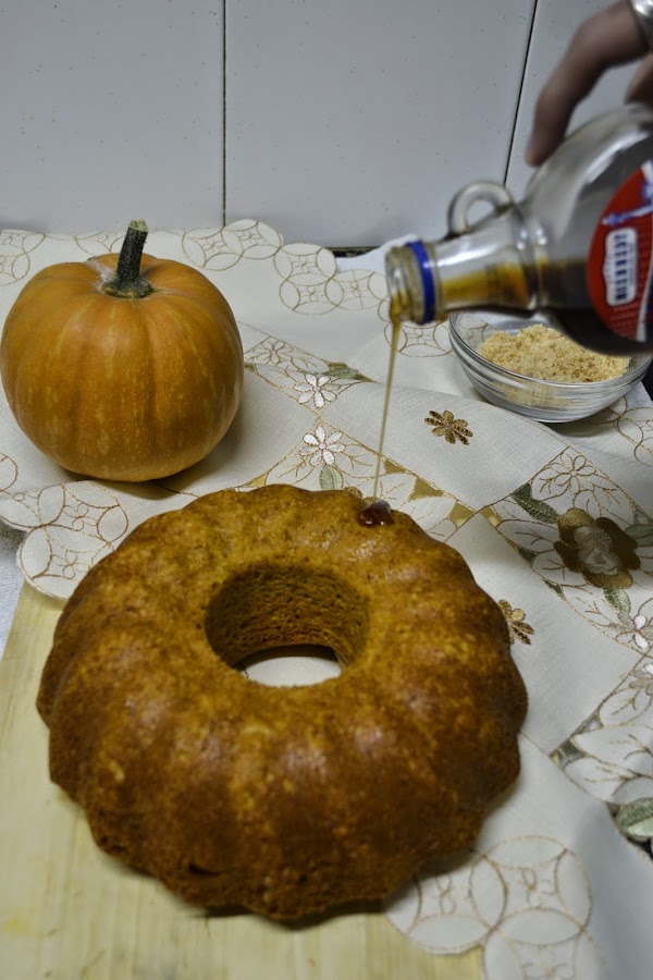 Esta vez les traigo por supuesto un bundt cake de calabaza con almendras, rociado con sirope de arce... mmmm... esta riquísimo y al acabarlo de hacer me ha encantado lo esponjoso que ha quedado!