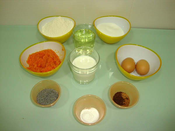 Añadimos alternando la mezcla de harina y la de puré de calabaza, empezando y acabando siempre con la mezcla de harina. Finalmente añadimos las semillas de amapola.