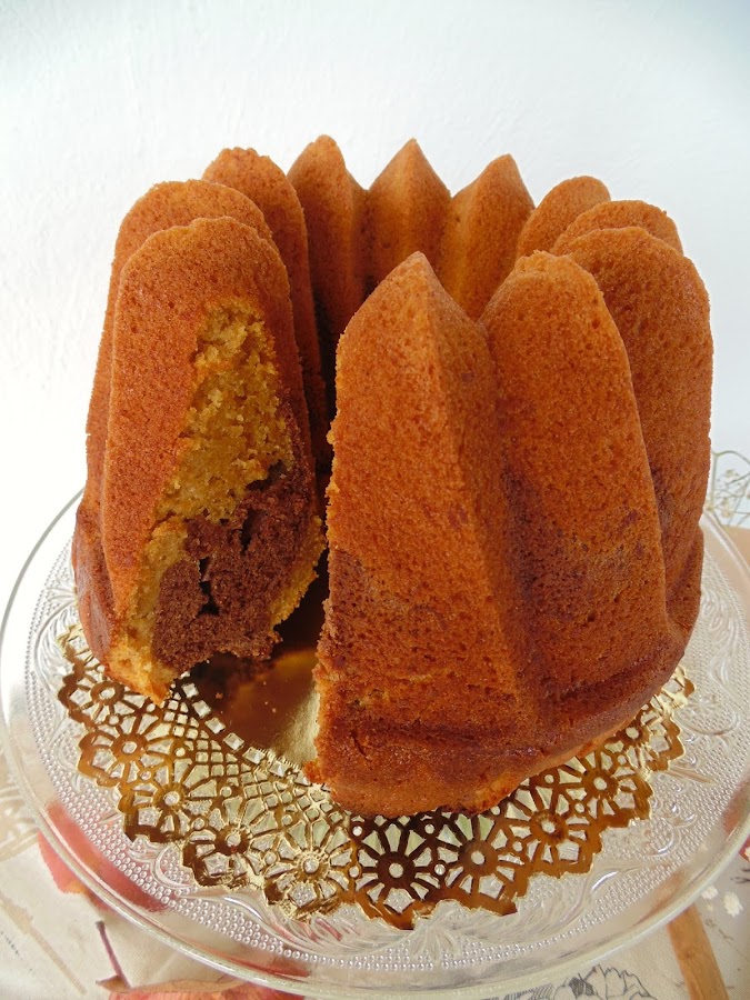 Me he atrevido a hacer un bizcocho con dos masas, una especiada de calabaza y otra de chocolate! La combinación ha sido todo un acierto! Me acompañáis?