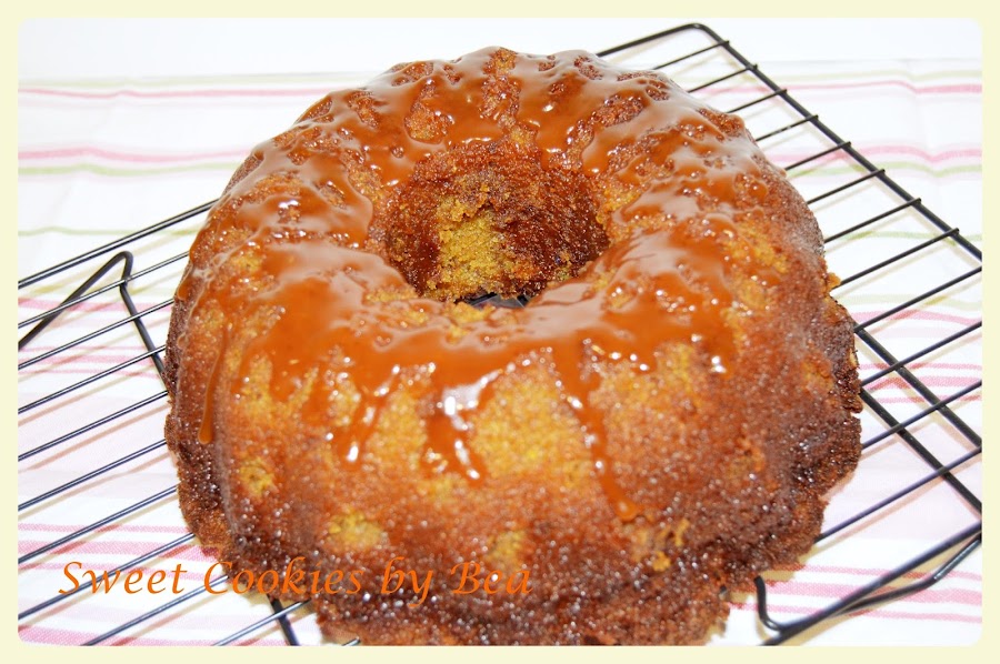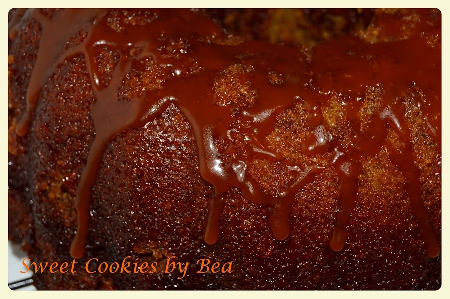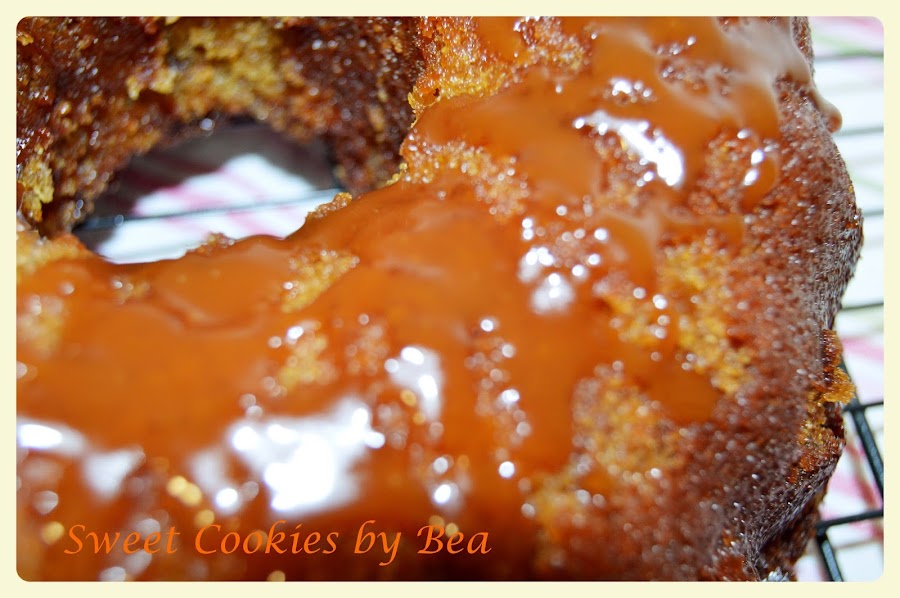 Dejamos templar un poco el caramelo y en un ratito listo para bañar nuestro bundt cake